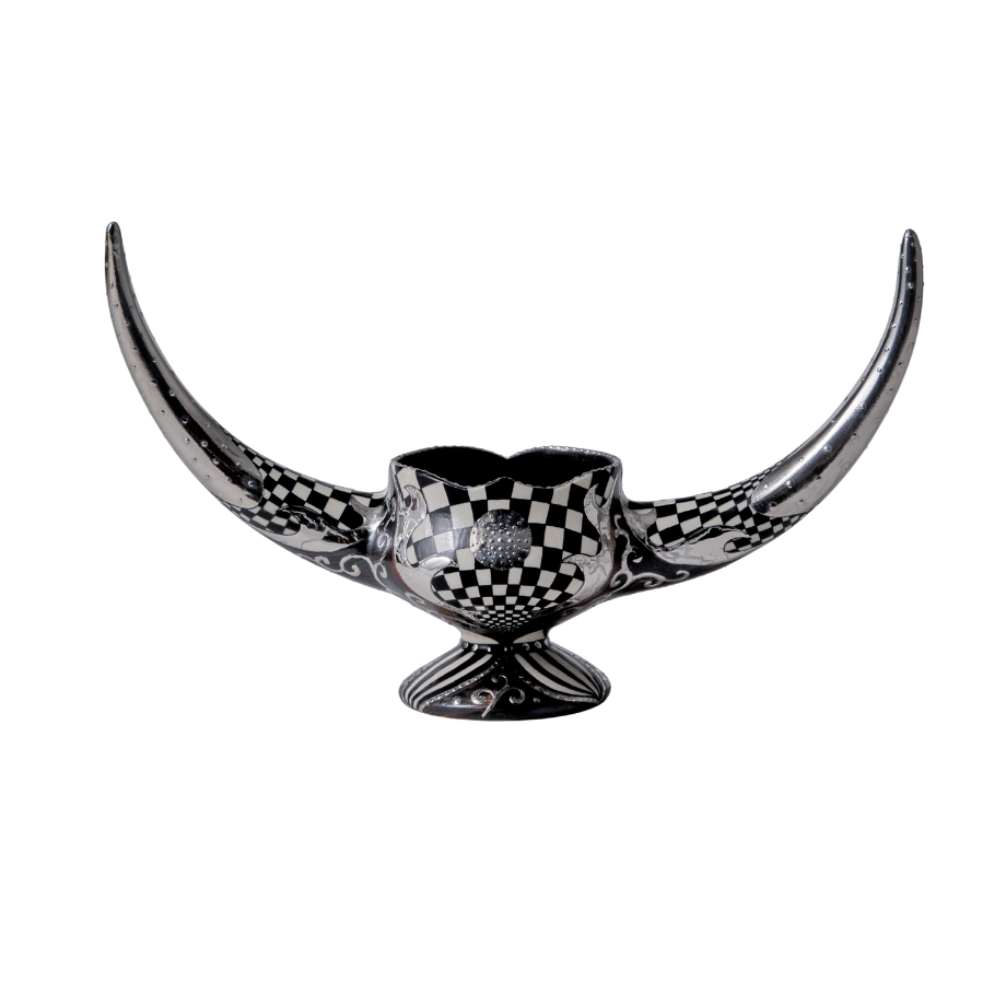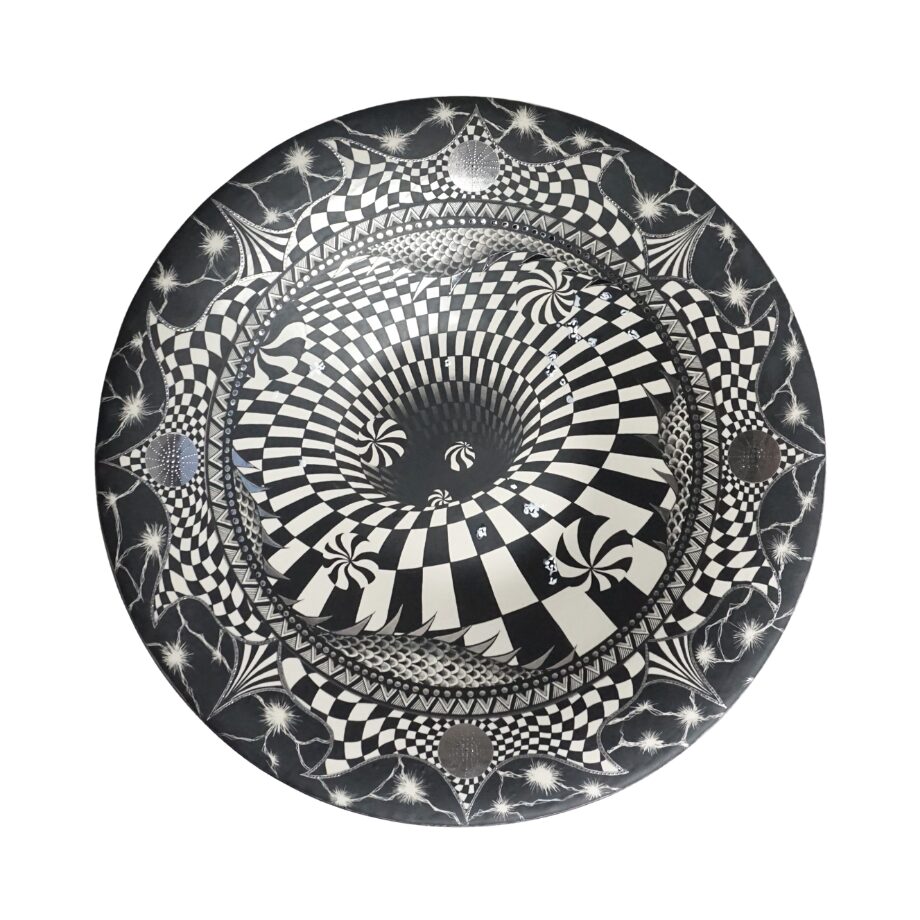 九谷焼の磁器土と伝統的な盛り絵具をベースに、結晶釉やカラフルな顔料、プラチナ彩などで加飾して陶作品を制作している。自由に遊ぶ気分や、不安定に揺らぐ気持ちを、粘土と絵付けに込めて、POPの中にあるダークネスや、日常と非日常が織りなすパラレルワールドを表現する。「作品を通して、誰もが通過してきた大人になる前の少し不思議な想像の世界で一緒に遊んでいただけたら嬉しい」と作家は語る。